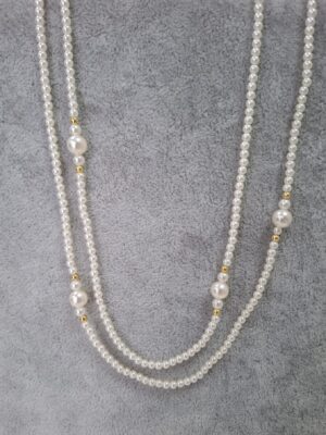 Naszyjnik z perełek przeplatany złotymi akcentami ze stali chirurgicznej