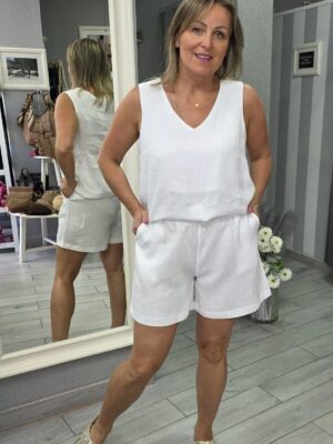 KRÓTKIE LNIANE BIAŁE SPODENKI FEEMA
