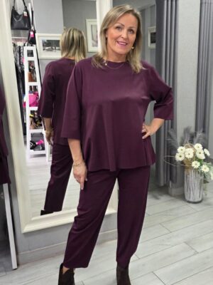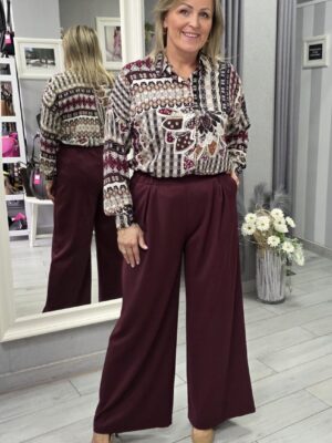 Spodnie o luźnym kroju w kolorze bordowym z zakładkami