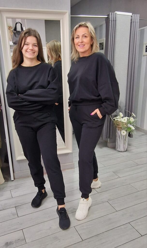 Wygodna prosta bluza dresowa w czarnym kolorze, materiał wysoko gatunkowa bawełna. Bluza wykończona ściągaczami pod szyją, na mankietach i dół bluzy. Posiada luźny, kimonowy rękaw. Model luźny, pięknie pasuje nie tylko do spodni dresowych, ale również do spódnic tak bardzo modnych w tym sezonie.