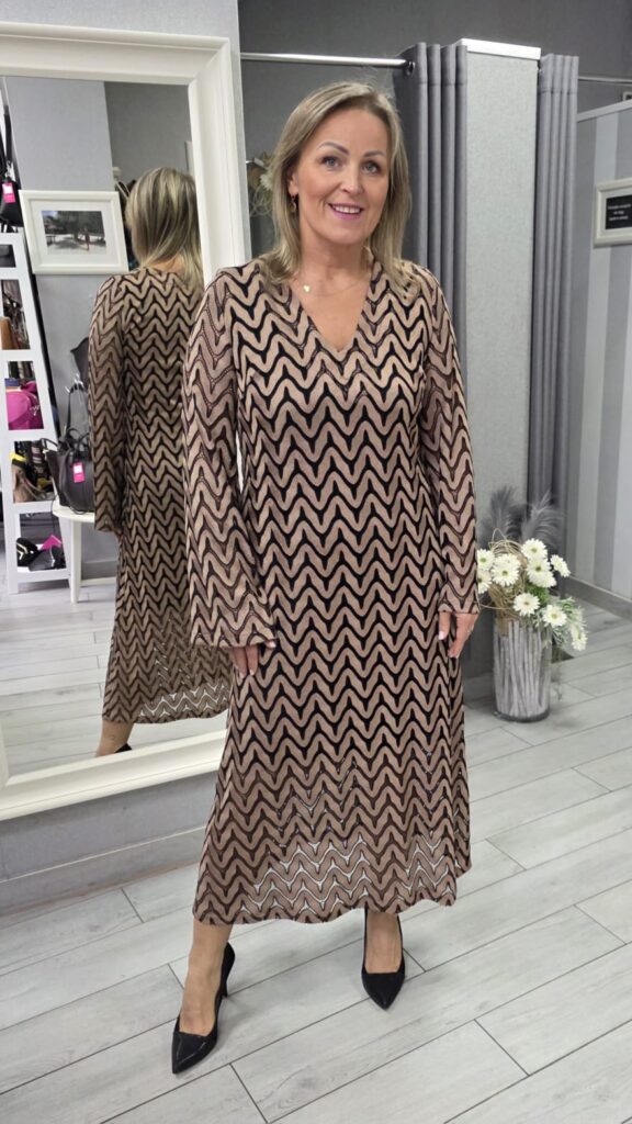 Ta sukienka z pewnością przyciągnie uwagę i pozwoli Ci wyrazić swoją wyjątkowość poprzez modę. To ubranie, które przyciągnie spojrzenia i sprawi, że poczujesz się wyjątkowo i stylowo! Sukienka uszyta z miękkiej i delikatnej dzianiny. Rękaw długi. Jest bardzo kobieca i uniwersalna, będzie pasować na różne sylwetki.