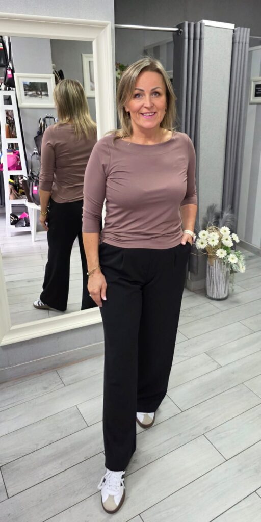 Bluzka basic to kwintesencja prostoty i elegancji. Jej minimalistyczny krój z dekoltem w łódkę i rękawem 3/4 sprawia, że dopasuje się do każdego stylu – od biurowego po weekendowy luz. Uszyta z miękkiej dzianiny o wysokiej zawartości wiskozy i bawełny, jest przyjemna w dotyku i świetnie układa się na sylwetce.