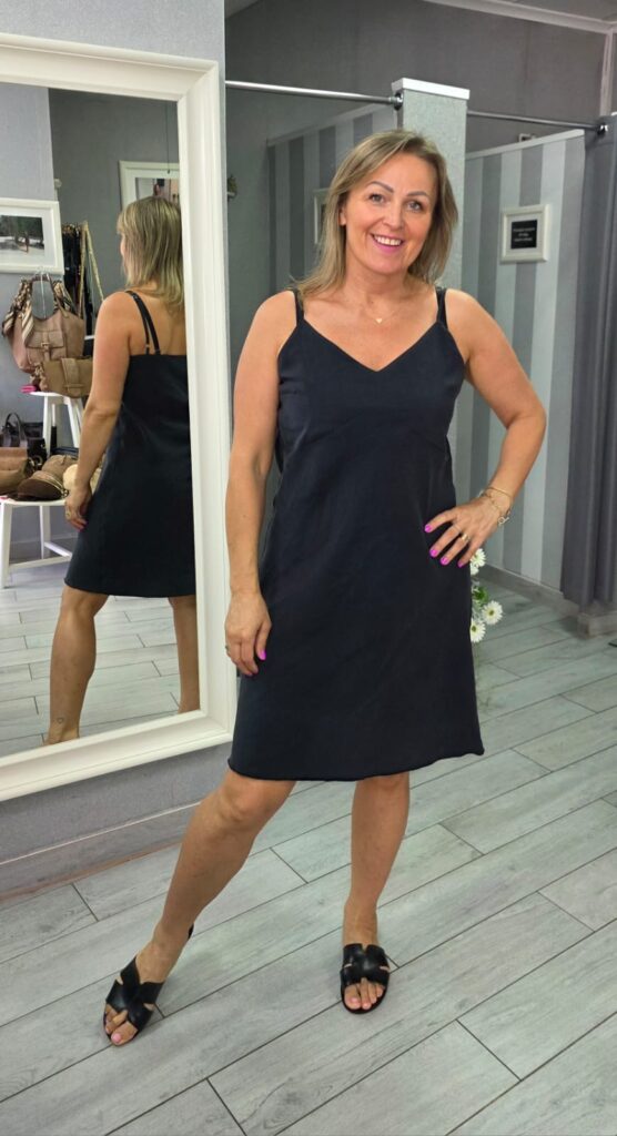 Czarna sukienka na ramiączkach – klasyczna elegancja w lekkim wydaniu z modalu Feema