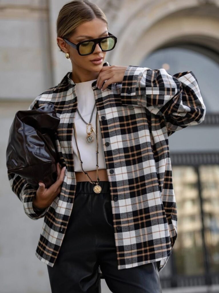 Stawiamy na wysoką jakość, komfort i ponadczasowy styl. W naszej kolekcji znajdziesz premium oversize flanelę z 100% bawełny, która jest absolutnym must-have tego sezonu. To moda w najlepszym wydaniu na ten sezon. Klasyczna kratka w odcieniach czerni, karmelu i śmietany. Detale, które robią różnicę – mankiety na dwa guziki: szerokie i modne albo dopasowane do nadgarstka.