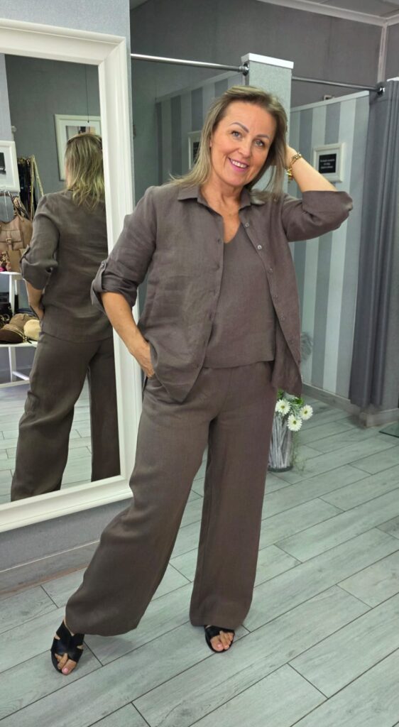 Piękna lniana koszula to klasyk który powinien znaleźć się w każdej szafie i z pewnością zostanie w niej na dłużej 🙂 Koszula jest luźna z kołnierzykiem, zapinana na guzki. Rękaw długości 7/8 o prostym luźnym kroju z możliwością podpięcia. Ponadto len nie elektryzuje się, nie ma takiej możliwości. Wyróżnia się też wysoką absorpcją wilgoci, przewiewnością. Włókna lnu najczęściej wykonujemy w tkaninach kolekcji typowo letnich, królują u nas lniane spodnie, spodenki czy koszule.