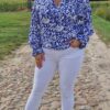 Krój jest luźny, co sprawia, że jest ona wygodna i swobodna. Możliwość noszenia jej zarówno do spodni, jak i spódnic, czyni ją uniwersalnym elementem garderoby. Można ją zestawić z białymi spodniami, jak na zdjęciu, co tworzy harmonijną całość, ale równie dobrze wyglądałaby z dżinsami czy spódnicą w innym kolorze. Dodatkowo, białe spodnie nadają całej stylizacji lekkości i świeżości.