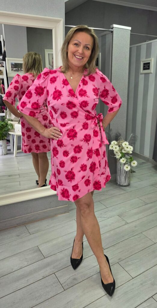 Sukienka o niezwykle kobiecym kroju, wysmukla oraz wyszczupla sylwetkę. Interesujący print przyciąga wzrok i sprawia, że jest to idealna propozycja zarówno na co dzień, jak i na bardziej eleganckie okazje.