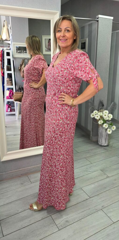 Sukienka na krótki rękaw to elegancki wybór, który łączy w sobie komfort i styl. Materiał jest przyjemny w dotyku i przewiewny, co sprawia, że idealnie nadaje się na różne okazje. Zwiewna sukienka maxi idealna na letnie dni i nie tylko. Kobiecy fason podkreśla sylwetkę, a delikatny materiał dodaje lekkości i elegancji. Subtelnie podkreśla figurę, a jej seksowny charakter sprawia, że poczujesz się wyjątkowo