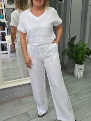 Lniany malinowy top na szerokich ramiączkach FEEMA