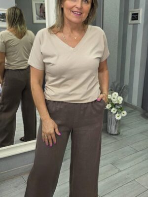 BEŻOWY T-SHIRT DAMSKI-KOSZULKA Z BAWEŁNY W PODWÓJNY SZPIC FEEMA
