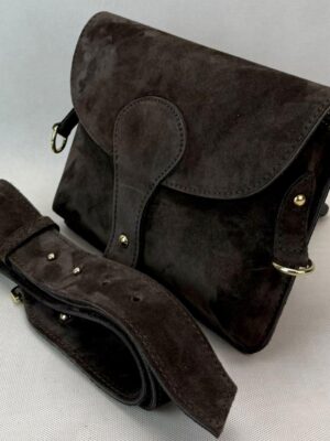 Mała czekoladowa torebka listonoszka ze skóry zamszowej