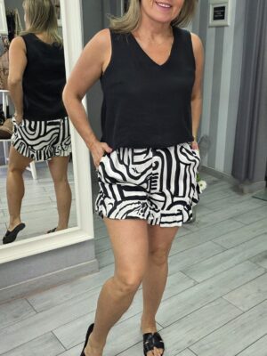 Lniany czarny top na szerokich ramiączkach FEEMA