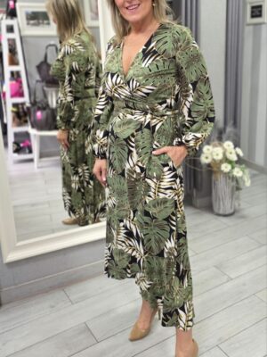 Kopertowa sukienka z wiskozy w liście