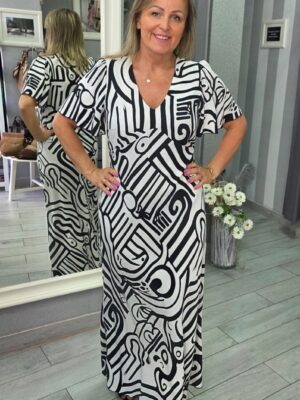 Wiskozowa biało-czarna sukienka Anna II maxi Feema