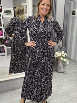 Długa sukienka MOLLY z wiskozy czarno-biała