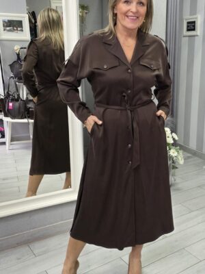 Sukienka szmizjerka z kołnierzykiem VEGA Brown